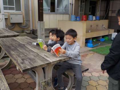 太陽が出ていたので、上着を着て外で読むことにしました。
