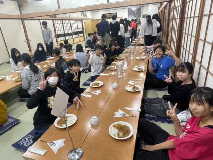 昼食はもうそろそろ終わります。12:50に昼食会場を離れ次はミカン農園です。ミカン狩りにふさわしい天気。おみやげのミカンが楽しみですねぇ〜。