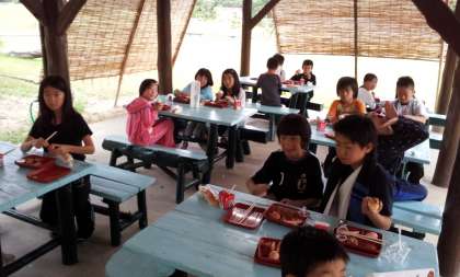 8時から朝食。みんなしっかりたべています。雷が鳴りはじめたので、朝の活動が気になります。