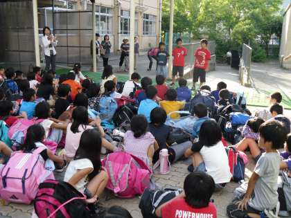 みさきの家から帰って来ました。解散式では司会の子が,みさきで学んだことを,これからの学習にいかしていこう。と言っていました。