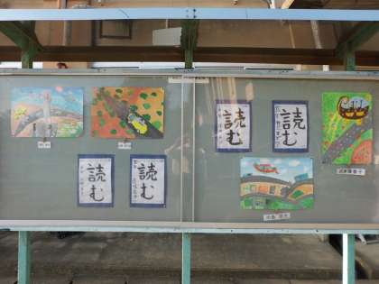 運動場の掲示板に新しい作品を掲示しました。今回は,5年生の作品です。