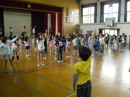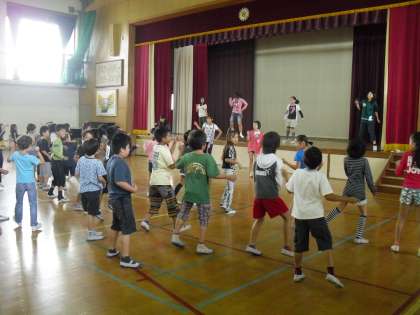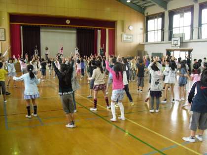 中間休みは3・4年生の全校ダンス練習でした。子どもたちはダンス委員の見本を見ながら,楽しそうに踊っていました。運動会の練習がどんどん進んでいます。