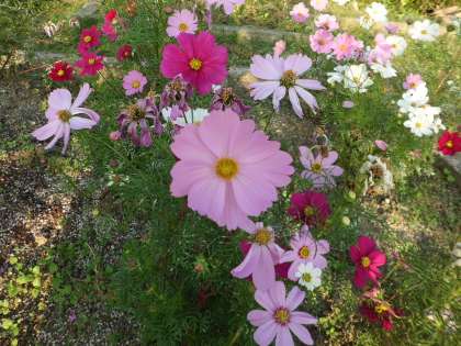 10月15日 おはようございます。今日も過ごしやすい一日になりそうです。学校園のコスモスも綺麗に咲いています。