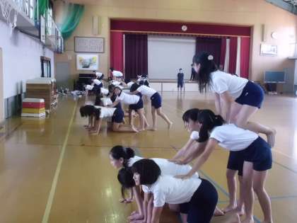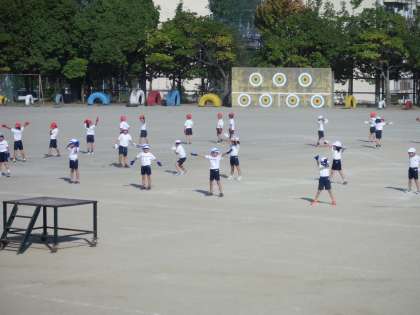 5校時に運動場で1年生が,体育館で6年生が運動会の練習をしていました。台風が発生しているので少し心配です。