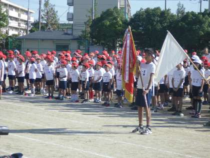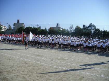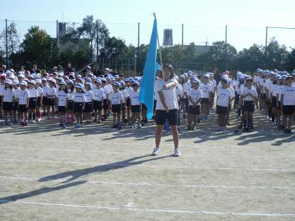素晴らし天気のもと,運動会をはじめることができました。各色堂々の入場でした。開会式もしっかりできました。
