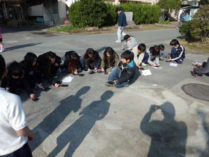 3年生が理科の「光のはたらきを調べよう」で太陽の光を虫眼鏡で集めて黒い紙を焦がしていました。新し発見をすると子どもたちは,楽しそうでした。