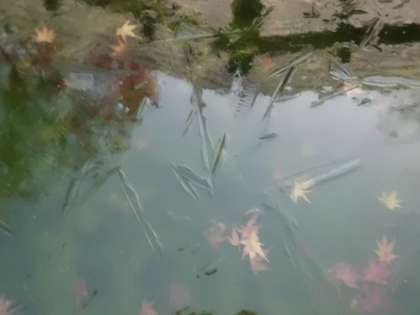 12月11日 おはようございます。今朝も気温が0度と低く,池の水も凍っています。