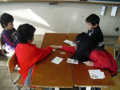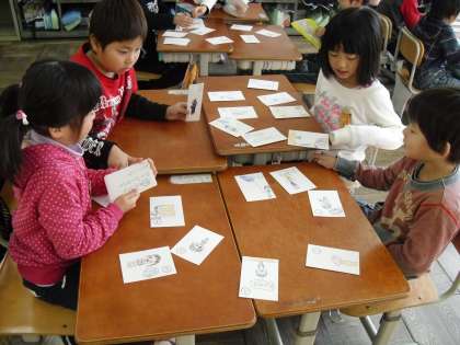 今日はグループで自分たちのつくったかるたを出し合い、楽しみました。