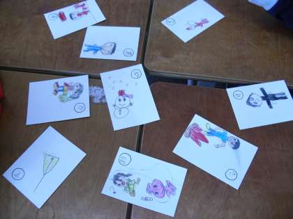 国語の学習で、かるたをつくりました。冬のことばをたくさん集めて考えました。