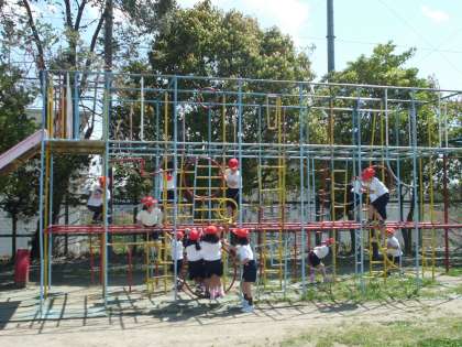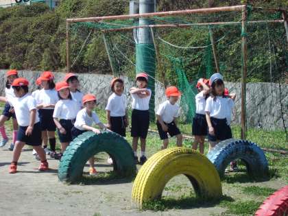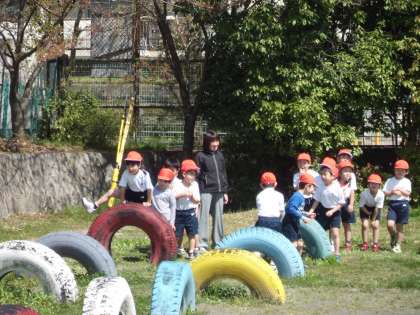 2校時にタイヤや総合遊具で楽しそうに体を動かしていました。