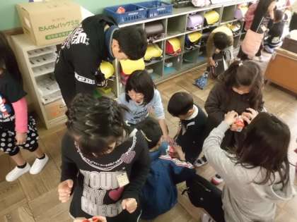 そんな1年生に、6年生が牛乳パックの洗い方・たたみ方を教えてくれました。
