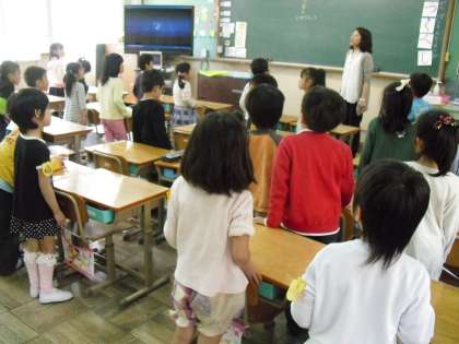 昨日は1年生にとって初めての5校時授業でした。1組も2組も音楽の授業です。どちらのクラスも『さんぽ』の歌を,体を動かしながら大きな声で歌っていました。5時間目の授業も頑張っていました。