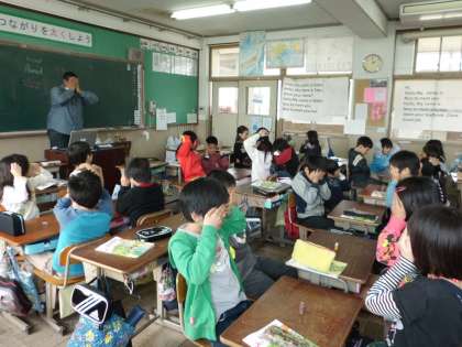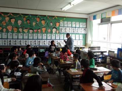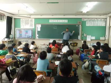 今日は初めてのALT「アーメド先生」との外国語活動。