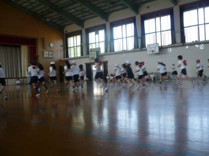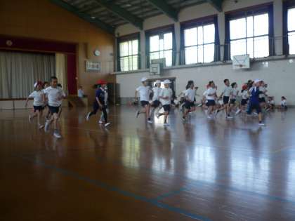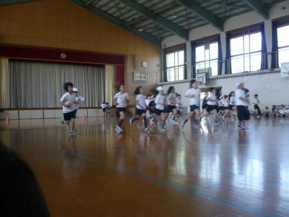 4年生では,6年生になったときに大文字駅伝出場を目指すためにも,体力テストで行ったシャトルランを,継続して行っています。
