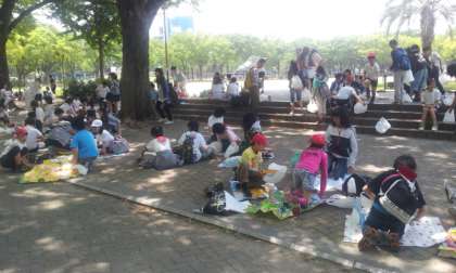 科学館に着きました。今から前の公園でお弁当です。楽しいお弁当の時間になりそうです。