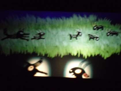 影絵劇団かしの樹による「あらしのよるに」を鑑賞しました。大きなスクリーンにきれいな色でオオカミとヤギが登場しました。子どもたちも楽しそうに見ていました。後半は影絵の仕組みを教えていただき、代表の子どもが人形を動かしていました。