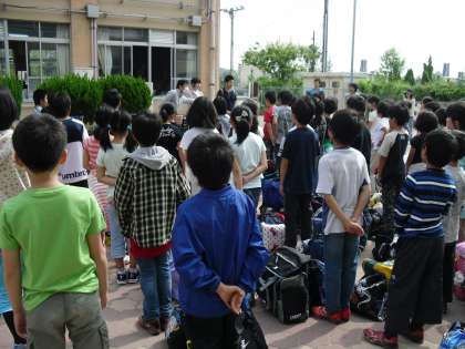 今しっかりと出発式を終え,バスに向かって学校を出発しました。5日間と長いですがみんなで協力して,楽しい活動ができるように頑張ってほしいと思います。