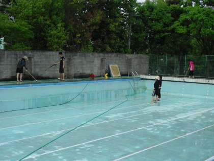 放課後は教職員でプール掃除をしました。更衣室やプールのすみ等を行いました。きれいになりました。