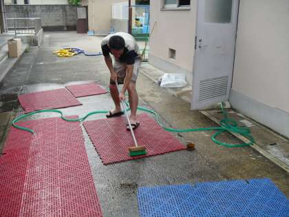 更衣室で使うマットや子どもたちが立つ場所もきれいになりました。