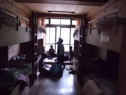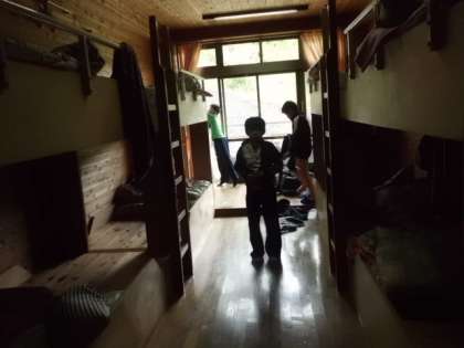 朝食のあと、荷物の整理をしています。このあと、3回目の野外炊飯です。おいしいハヤシライスができると思います。