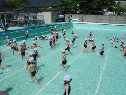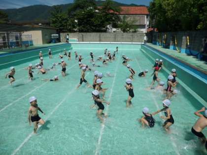 今日は気温も高く、最高の水遊びの日になりました。子どもたちは「キャーキャ」と言いながら楽しそうにしていました。