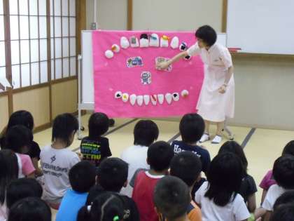 5時間目に歯みがき指導がありました。歯科衛生士さんに、正しいハブラシの持ち方や、歯の磨き方を教えていただきました。ちょうど永久歯に生え変わっている時期の二年生。毎日磨いてきれいな歯を保ってほしいと思います。