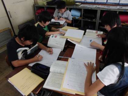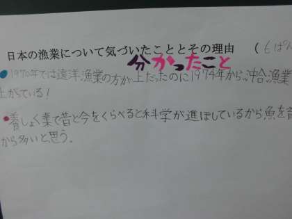 授業では、一人学びの後、グループ学びの様子を見ていただきました。