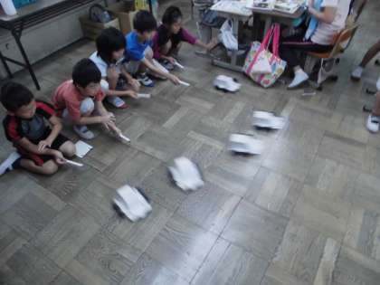 今日は,風やゴムでうごく車をつくりました。色をぬり,うごくかどうか試走もしました。