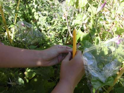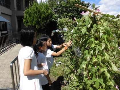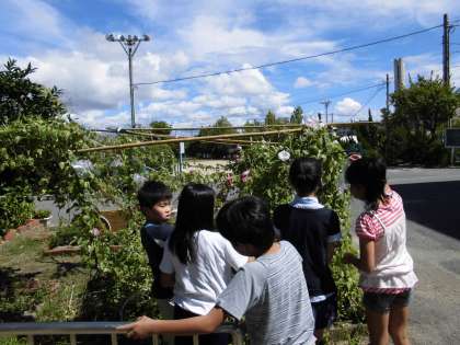 子どもたちは,アサガオの花がとれてしまわないように,とても慎重に作業していました。