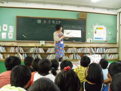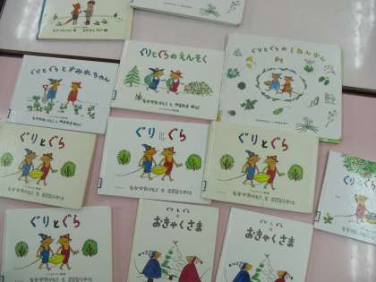 国語「くじらぐも」の作者、なかがわ りえこさんの作品や雲に関する本を読む時間を取りました。「ぐりとぐらの1ねん」の読み聞かせをしてもらったあと、図書室の本と洛西図書館から借りた本をたくさん読みました。
