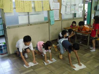 いつも掃除時間は、6年生がお手伝いに来てくれます。それを、1年生はとても楽しみにしています。6年生のお姉ちゃんとお兄ちゃんと一緒に、教室を楽しくきれいにしています。