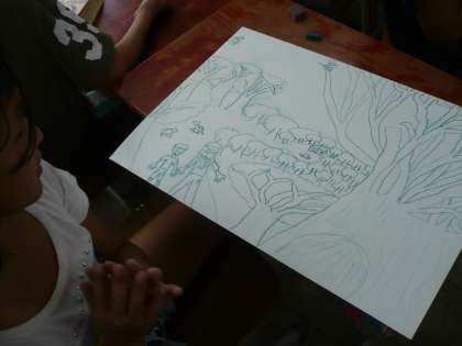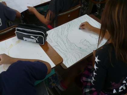 みんなとても真剣に,そして楽しそうに想像をふくらませて描いています。