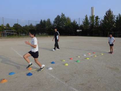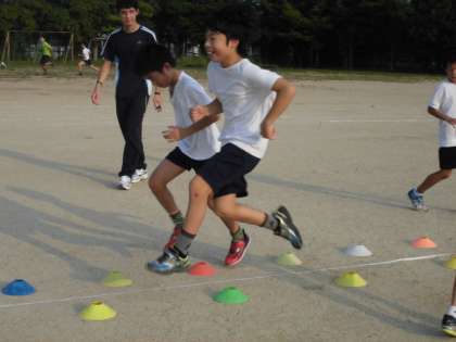 そして,カラーマークの間を駆け抜けるという練習をしました。