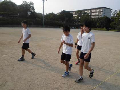 スキップやバック走など動き作りを行い,50mを計測しました。