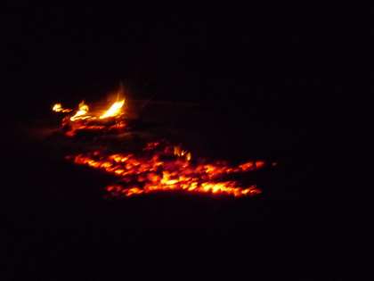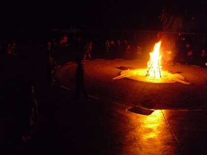 午後7時からキャンプファイヤーをしました。大きな炎を中心にしてクラスの出し物やゲームに盛り上がりました。