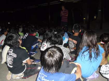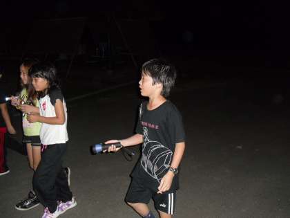 今日の最後の活動であるナイトハイクがスタートしました。グループで出発する前に私から怖い話をしました。それほで怖い話ではないのですが、女子の数人が泣いてしまいました。ごめんなさい。