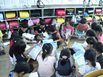 くじらぐもの学習で、好きな場面を友達と一緒に声に出して読みました。