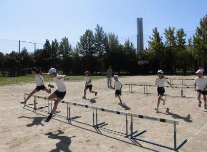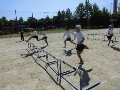 リズムよく姿勢を低くしてとびこえるには,まだまだ練習が必要のようです。