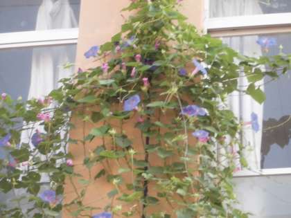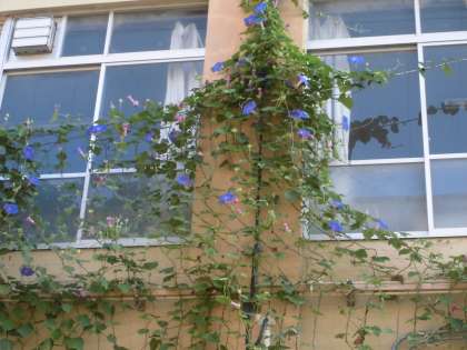 今日は中秋の名月です。夜にはきれいな月が見られそうです。学校のみどりのカーテンのオーシャンブルーもきれに咲いています。