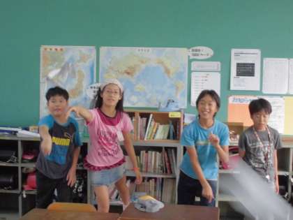 今日のクラブは,紙飛行機作り。自分の作りたい飛行機を選んで,飛ばしてみました。