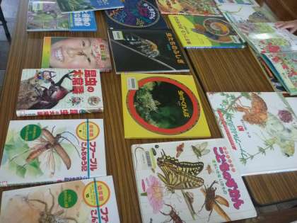 学習と並行して,たくさんのいきもについて興味をもってもらおうと,たくさんの本を洛西図書館から借りてきました。