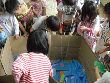 今日は一年生を招待して、自分たちのゲームのお店で遊んでもらいました。