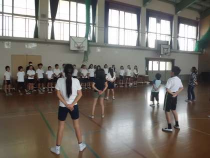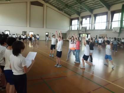 毎日練習をがんばっている応援団。明日の全校応援練習を前に,今日は,他の6年生もいっしょに応援練習を行いました。楽しい応援を考え,声を張り上げる応援団。体育館は,三色の応援の声がひびきわたっています。明日は,みんなでいっしょに応援練習で盛り上がってほしいと思います。