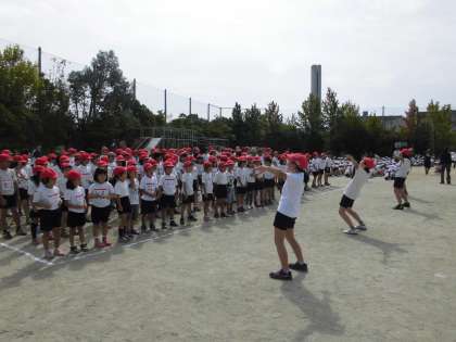 全校でのはじめての応援練習。応援団は,前に出て,応援の仕方を大きな声で呼びかけていました。優勝コールや学年コールなど,各組で工夫して応援練習しました。声もよく出ていましたが,これからますます盛り上がっていったらと思います。