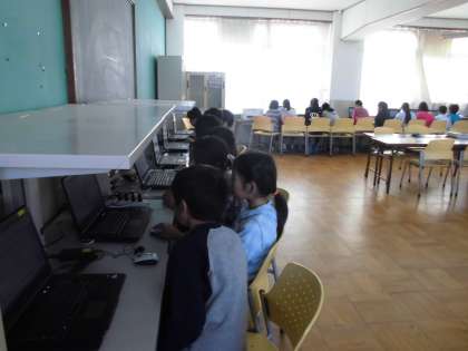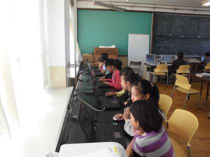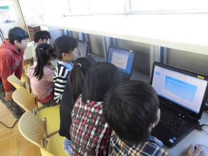 フォントの大きさや、背景のデザインなどを考えて、熱心に作っていました。