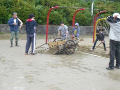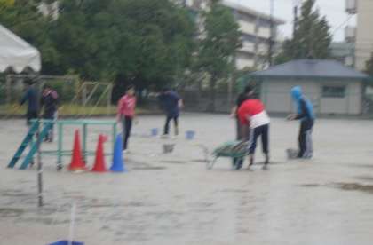 本日の運動会は,時間を遅らせて10:00より実施予定で準備を進めています。