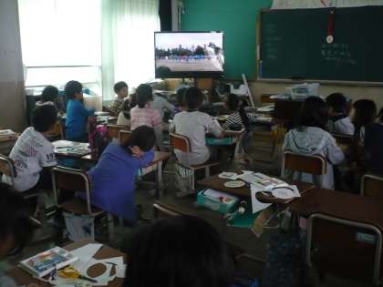 少しあいた時間に運動会のビデオを教室で見ました。