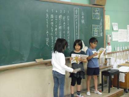 今日の国語の授業は、「お手紙」の音読げき発表会でした。