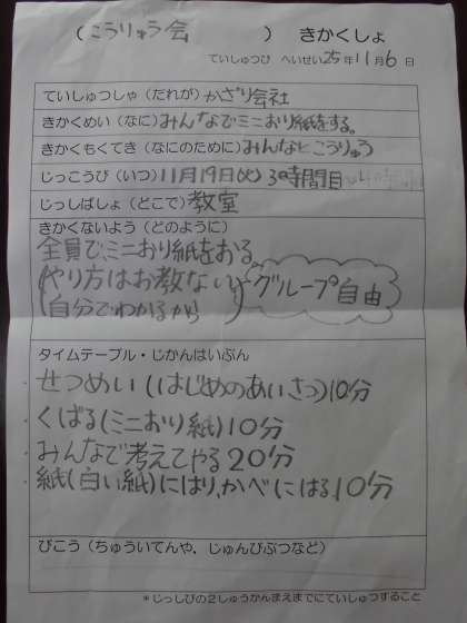 クラスで初めて企画書を書いてのお楽しみ会で,企画・準備・運営と上手にできました。