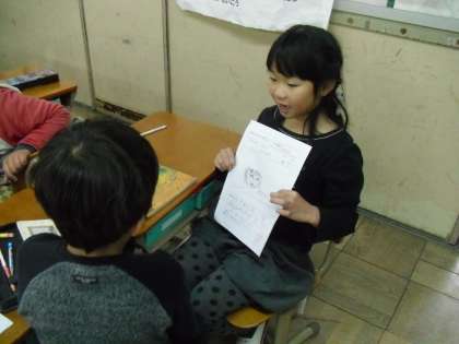 家族がにこにこするのはどんなときなのかを、おうちの人にインタビューしてきました。そして、どんなことでおうちの人はにこにこするのかを交流しました。学校のことを楽しそうに話してくれたとき、お手伝いをしてくれたとき、兄弟なかよくしているとき・・と自分たちが何かをやることで家の人はにこにこしてくれるんだということに気づけました。
